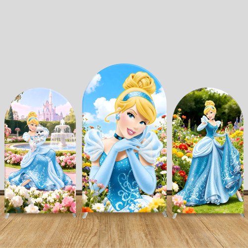 JY1223 Cinderella in the Garden Arch Backdrop Cover, Elastic Fabric Background for Floral & Princess Themed Party