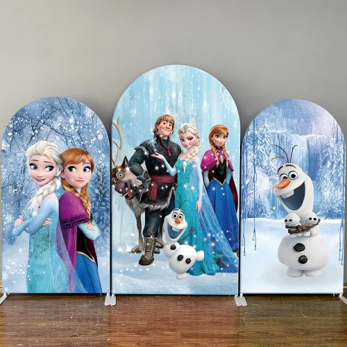 JY02 Frozen Ice Castle Arch Backdrop Cover Elastic Fabric Snow Queen Olaf Themed Party Decoration for Kids Birthday Christmas Wedding