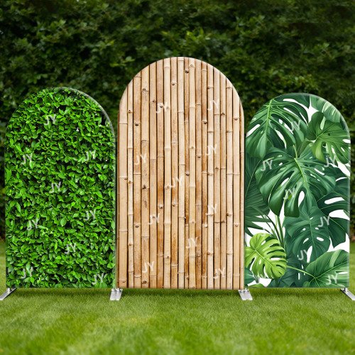 JY04 Bamboo Greenery Arch Backdrop Cover Elastic Fabric Tropical Jungle Themed Party Decoration for Wedding Baby Shower