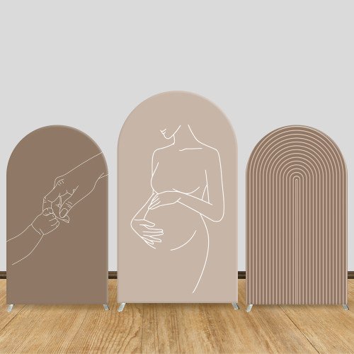 JY71 Minimalist Pregnant Woman Line Art Arch Backdrop Cover Elastic Fabric Boho Baby Shower Decoration