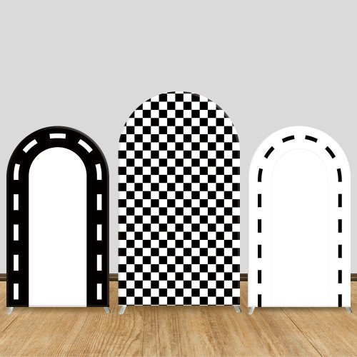 JY72 Black White Checkerboard Racing Arch Backdrop Cover Elastic Fabric Race Car Themed Kids Birthday Party Decoration