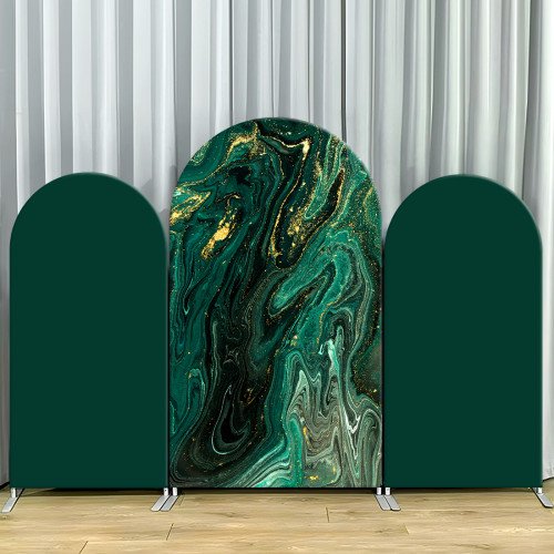 JY84 Emerald Green Gold Marble Arch Backdrop Cover Elastic Fabric Rustic Wedding Party Decoration