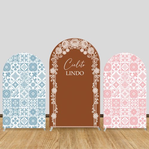 JY86 Blue Pink Talavera Tile Cielito Lindo Arch Backdrop Cover Elastic Fabric Mexican Themed Party Decoration