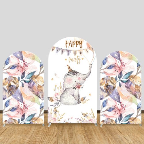 JY103 Watercolor Elephant Happy Birthday Arch Backdrop Cover Elastic Fabric Boho Kids Birthday Baby Shower Decoration