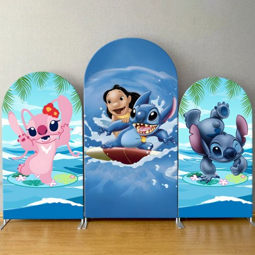 JY157 Lilo Stitch Surf Arch Backdrop Cover Elastic Fabric Cartoon Kids Birthday Party Decoration