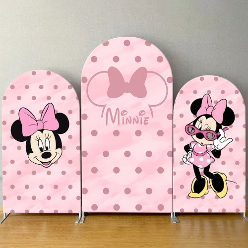 JY196 Pink Polka Dot Minnie Mouse Arch Backdrop Cover Elastic Fabric Girls Birthday Baby Shower Decoration
