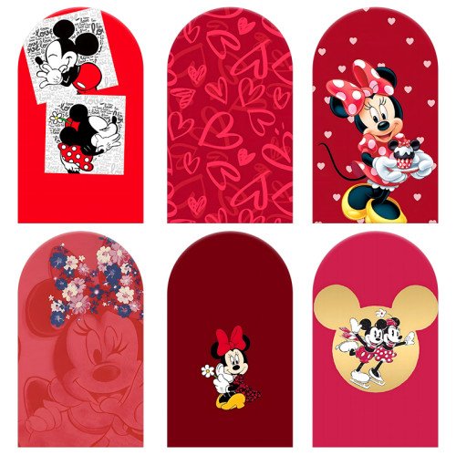 JY199-1 Mickey Minnie Mouse Red Love Heart Arch Backdrop Cover Elastic Fabric Valentine's Day Birthday Decoration