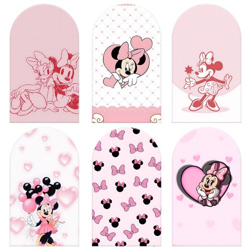 JY199-2 Pink Minnie Mouse Love Heart Balloon Arch Backdrop Cover Elastic Fabric Girls Birthday Baby Shower Decoration