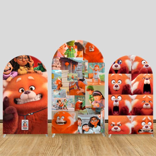 JY312 Turning Red Mei Panda Collage Arch Backdrop Cover Elastic Fabric Cartoon Kids Birthday Decoration
