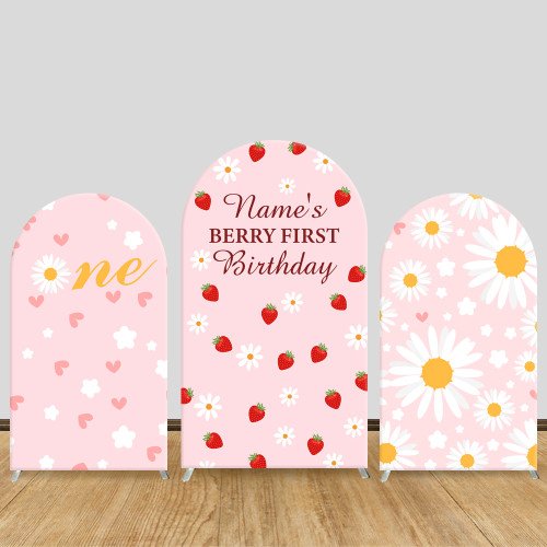 JY329 Strawberry Daisy Berry First Birthday Arch Backdrop Cover Elastic Fabric Baby 1st Birthday Decoration