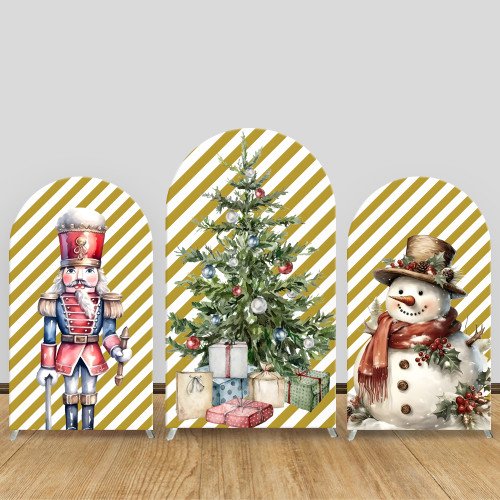 JY331 Christmas Nutcracker Snowman Tree Arch Backdrop Cover Elastic Fabric Holiday Party Decoration