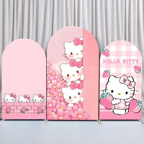 JY352 Pink Flower Strawberry Hello Kitty Arch Backdrop Cover Elastic Fabric Girls Birthday Party Decoration