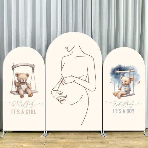 JY368 Teddy Bear Swing It's A Girl/It's A Boy Arch Backdrop Cover Elastic Fabric Baby Shower Decoration