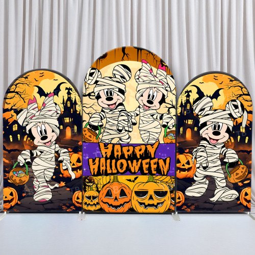 JY386 Mickey Minnie Mummy Costume Happy Halloween Arch Backdrop Cover Elastic Fabric Kids Halloween Decoration