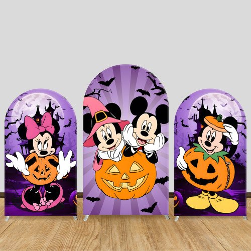 JY389 Mickey Minnie Pumpkin Costume Happy Halloween Arch Backdrop Cover Elastic Fabric Cartoon Kids Halloween Party Decoration