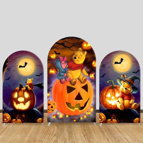 JY391 Halloween Winnie the Pooh Jack-O'-Lantern Arch Backdrop Cover, Cartoon Elastic Fabric Backdrop for Kids Halloween Party Decor