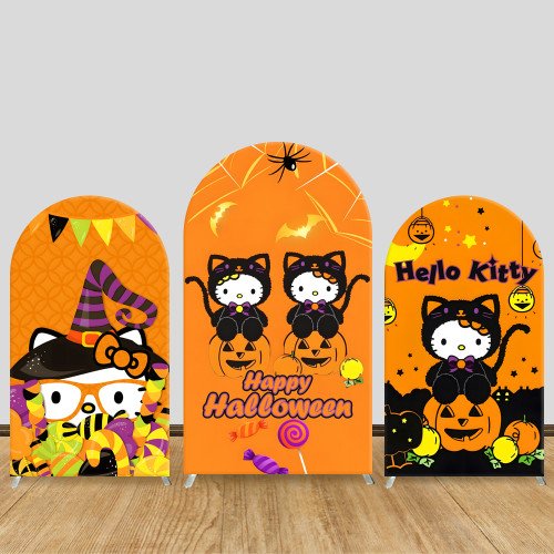 JY398 Hello Kitty Halloween Black Cat Candy Arch Backdrop Cover Elastic Fabric Kids Halloween Party Decoration