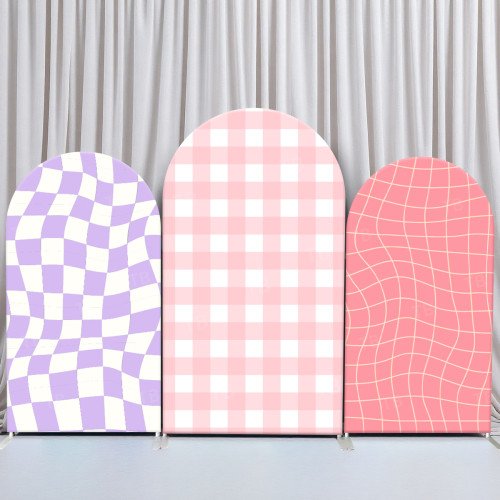 JY225 Purple/Pink Wavy Checkerboard Arch Backdrop Cover Elastic Fabric Modern Birthday Party Decoration