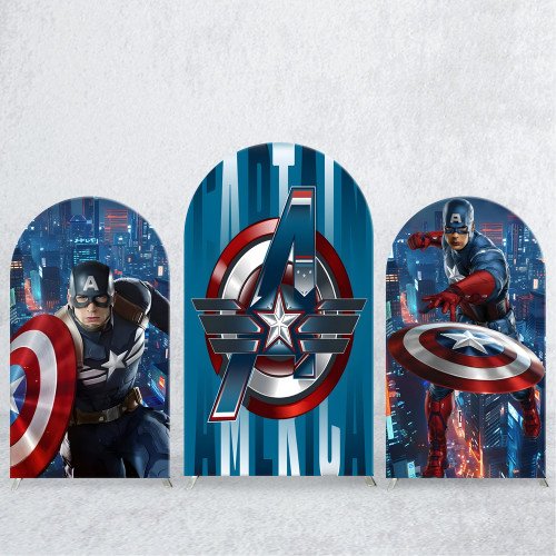 JY255 Captain America City Night Arch Backdrop Cover, Elastic Fabric Arch Backdrop for Superhero Themed Party, Wedding, Photography Background Decor