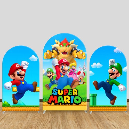 JY287 Super Mario Arch Backdrop Cover, Elastic Fabric Arch Backdrop for Kids Birthday Party, Photo Booth Decoration