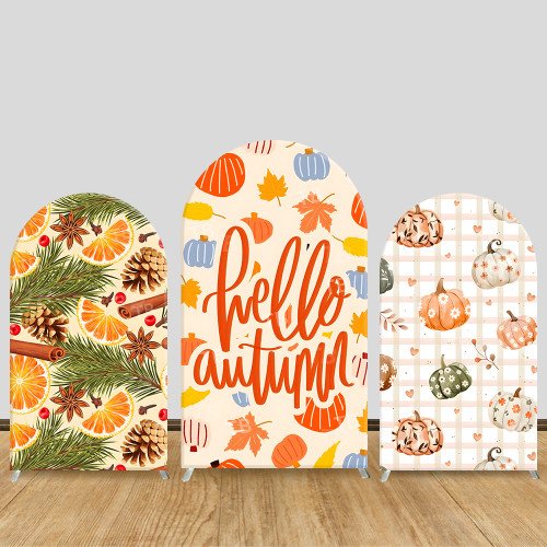 JY533 Hello Autumn Pumpkin Spice Arch Backdrop Cover, Elastic Fabric Arch Backdrop for Fall Baby Shower, Thanksgiving Decoration