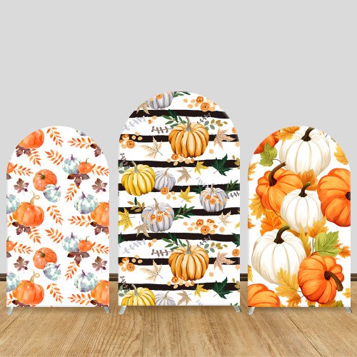JY533 Fall Pumpkin Stripe Arch Backdrop Cover, Elastic Fabric Arch Backdrop for Thanksgiving, Halloween Party Decoration