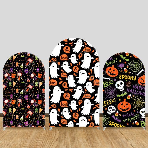 JY538 Cute Witch Ghost Halloween Arch Backdrop Cover, Elastic Fabric Arch Backdrop for Kids Spooky Party Decoration
