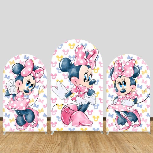 JY555 Minnie Mouse Pink Polka Dot Arch Backdrop Cover, Elastic Fabric Arch for Girls Birthday Party, Photo Booth Decoration