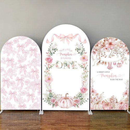 JY562 Our Little Pumpkin is Turning One Arch Backdrop Cover, Pink Floral Bow Elastic Fabric Arch for Baby Girls 1st Birthday, Baby Shower Decoration