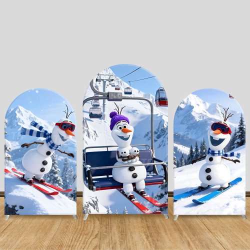 JY602 Frozen Olaf Ski Lift Arch Backdrop Cover, Elastic Fabric Arch for Kids Winter Party, Birthday Decoration
