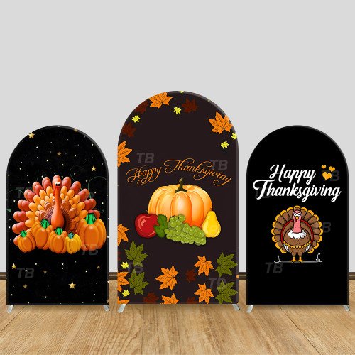 JY618 Happy Thanksgiving Turkey Pumpkin Arch Backdrop Cover, Elastic Fabric Arch for Thanksgiving Party, Holiday Decoration