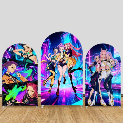 JY624 K-POP Demon Hunters Girl Group Arch Backdrop Cover, Neon Cyberpunk Elastic Fabric Arch for Teen Birthday, Party Decoration