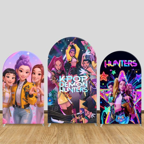 JY624 K-POP Demon Hunters 3D Realistic Arch Backdrop Cover, Elastic Fabric Arch for Teen Girl Birthday, Photo Booth Decoration
